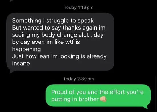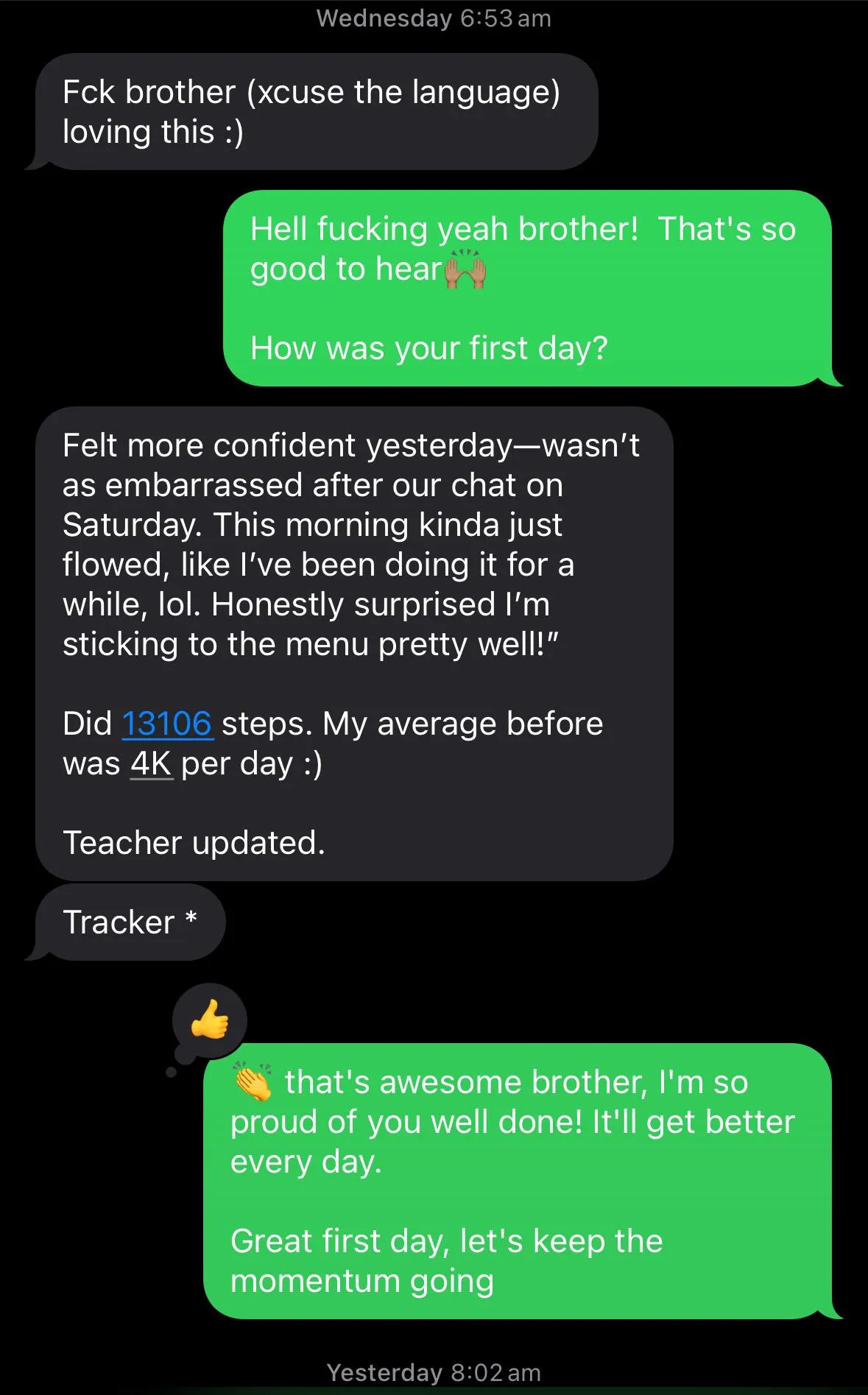 After determining that what we do for guys is a fit for you and your goals, you tell us everything we need to know about your current situation, what you want to change/improve, preferences etc. We use this information to tailor a protocol to build new habits into your life that generate the outcomes you want, then hold you accountable to achieving them.