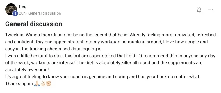 It varies but we work with blokes to get the fat off fast, it's not uncommon for the guys we coach to drop 10-15kg in their first 12 weeks if they apply themselves 100%